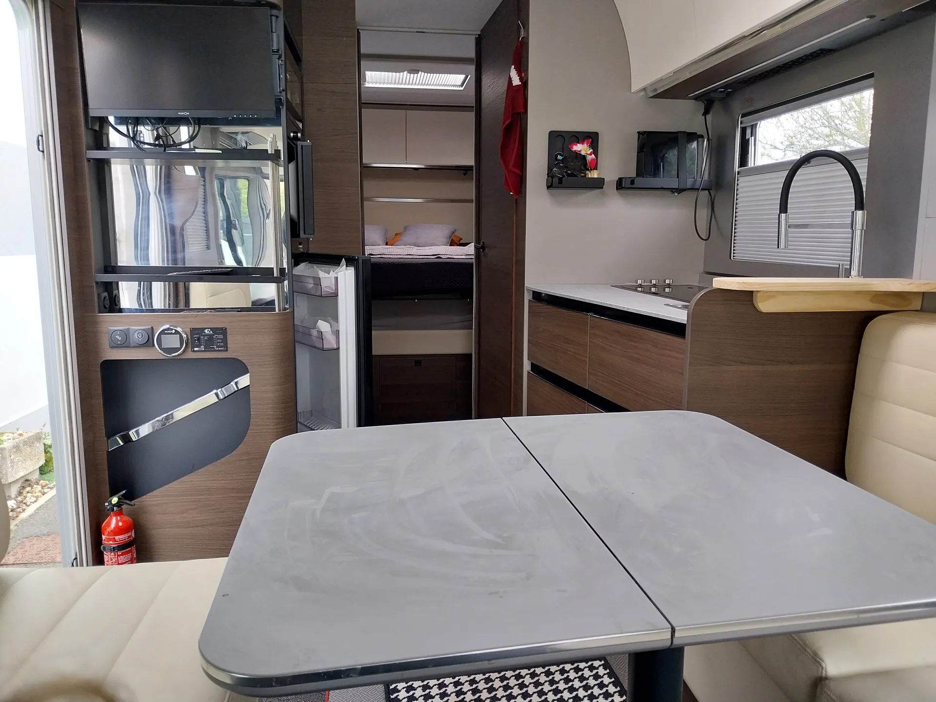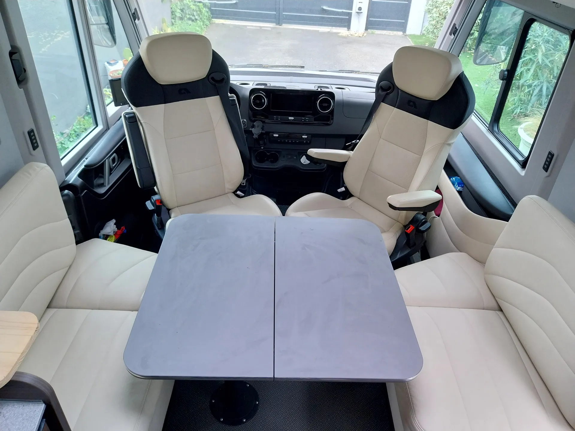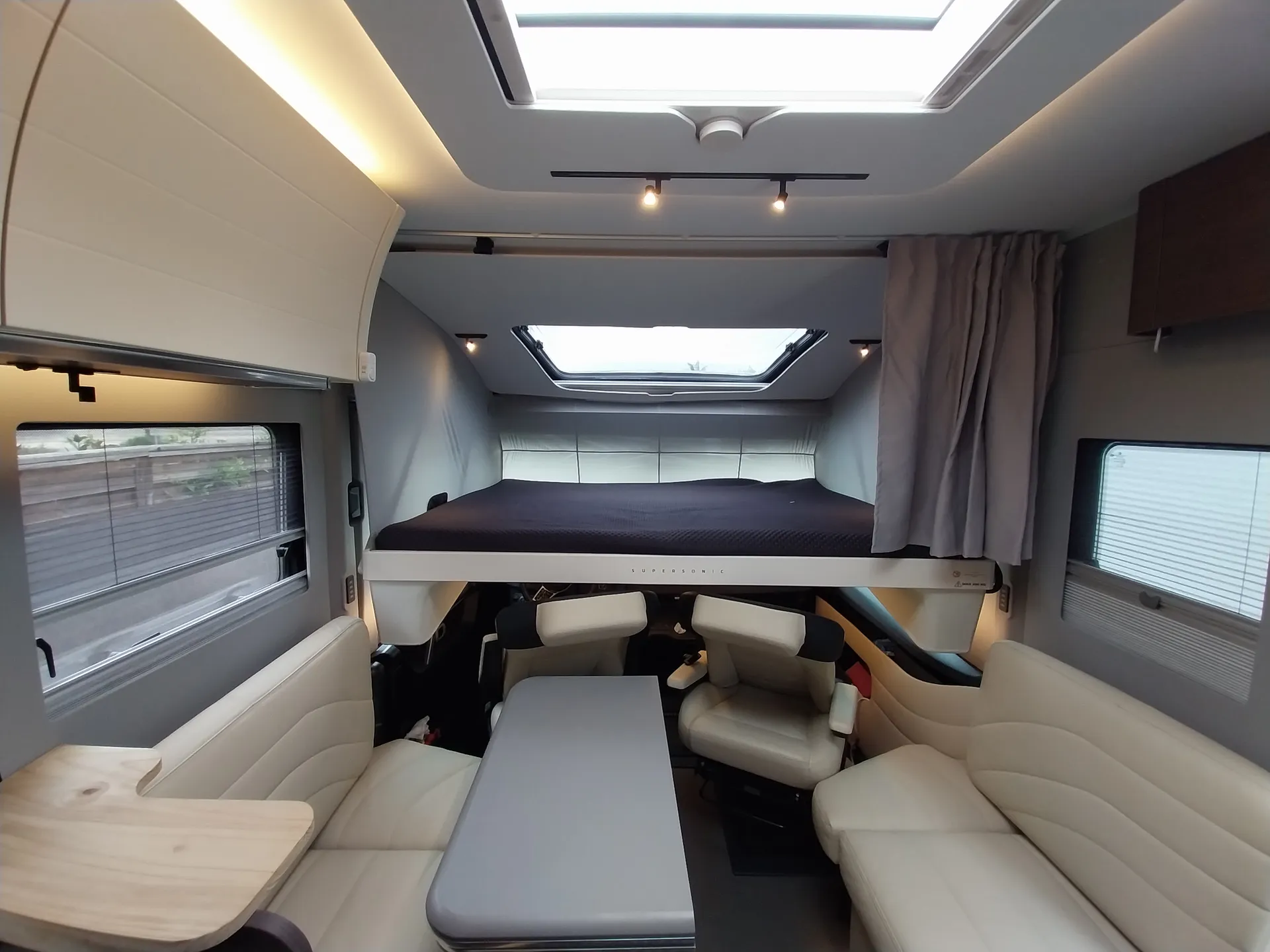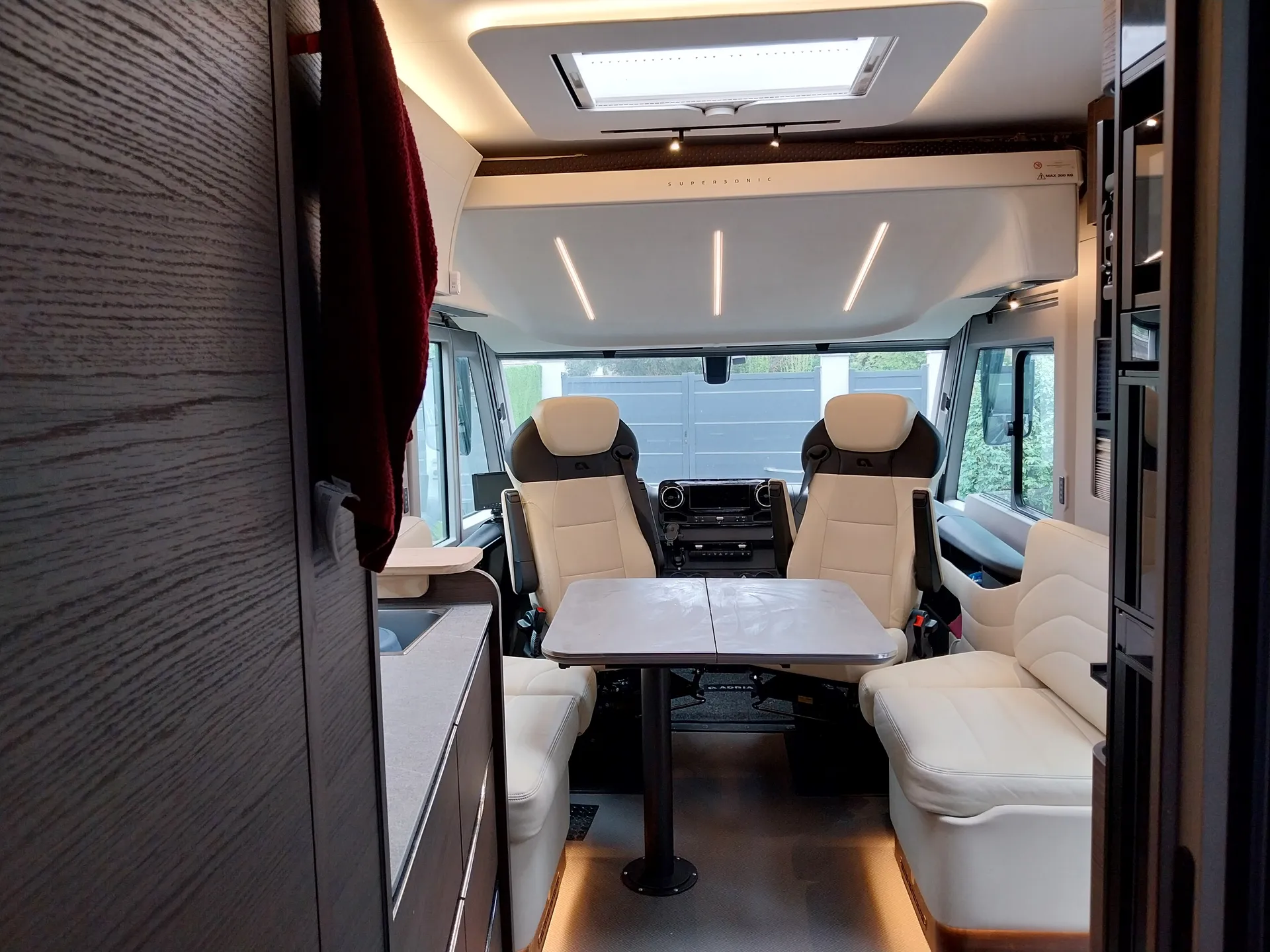 Idéal pour les voyageurs exigeants, il dispose d’un store extérieur de 5 m, d’un attelage, d’un panneau solaire 200 W et d’un convertisseur 2000 W, garantissant une autonomie optimale. Le design intérieur moderne, les matériaux qualitatifs et la finition soignée font de ce Supersonic un véhicule rare sur le marché.